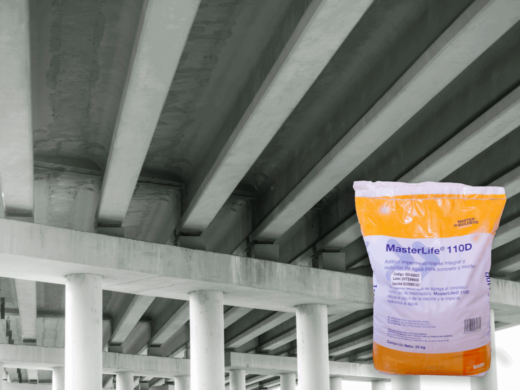 MasterLife 110 D es un polvo seco que se agrega al concreto o mortero en la mezcladora. MasterLife 110 D reduce el agua de la mezcla y le imparte repelencia al agua.
